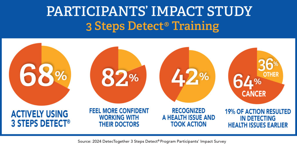 We deliver educational presentations that save lives. 40% of us will receive a cancer diagnosis in our lifetime, so being prepared and having a strategy to recognize it as early as possible, is life-saving. With 3 Steps Detect, we teach people how to detect cancer early and significantly improve their chances of surviving cancer. In some cases, you are 10 times more likely to live if you take action at Stage 1 instead of Stage 4.